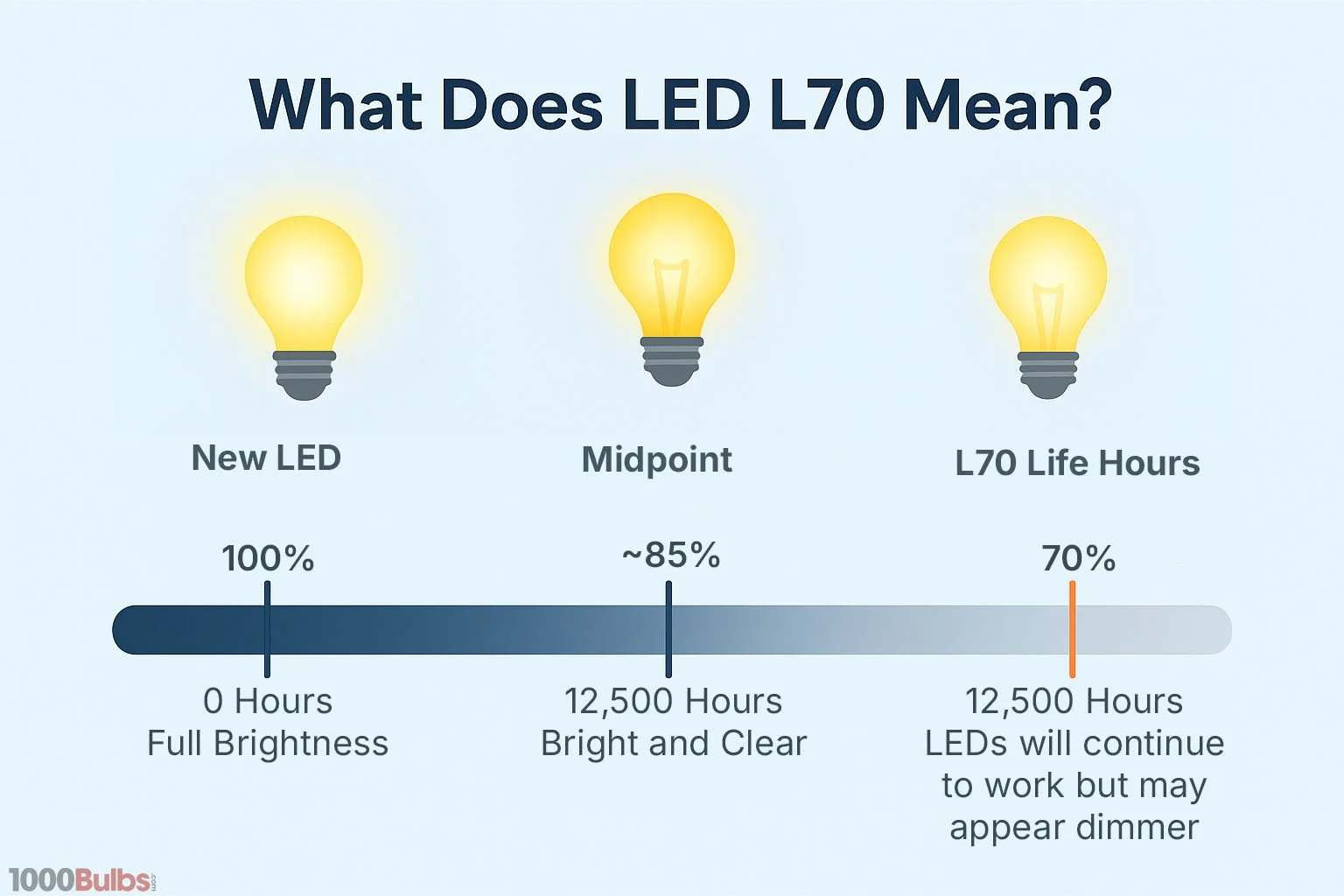Lighting Fact: Most LED bulbs and fixtures will have L70 life hour information listed on product packaging, specification sheets, and webpages.